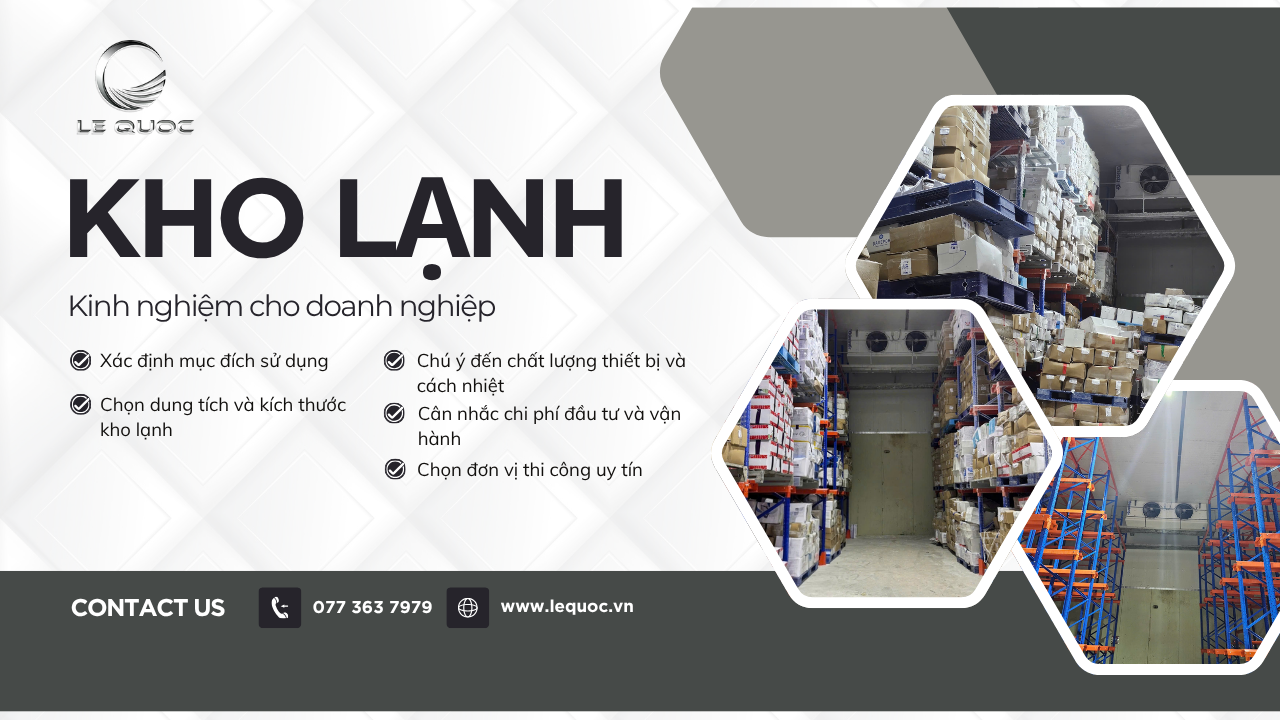 Việc lựa chọn kho lạnh phù hợp không chỉ giúp doanh nghiệp bảo quản hàng hóa an toàn mà còn là khoản đầu tư chiến lược để nâng cao hiệu quả kinh doanh và phát triển bền vững. Nếu doanh nghiệp của bạn đang cần giải pháp kho lạnh chuyên nghiệp, hãy liên hệ ngay với Công ty Cơ điện lạnh Lê Quốc để được tư vấn miễn phí: